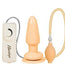 Vibrating inflatable butt plug with suction cup base features squeeze bulb and quick air release valve. Expands to 3X its deflated size. Requires 2 AA batteries, not included.